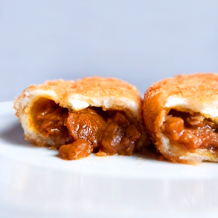 カレーフィリングは国産牛すじ肉をとろとろになるまで煮込み、野菜や果物、スパイスを追加した薫り高いオリジナルカレー。一口食べるごとに、最高級牛の食感と旨味を味わえます。