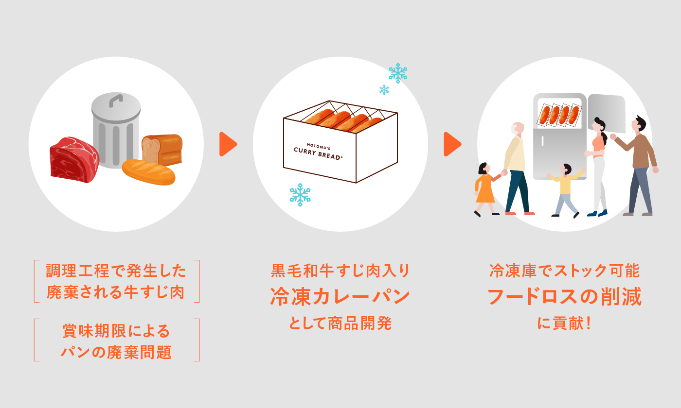もとむのカレーパンはこれらのフードロスを解決する、社会的に意義のある商品として開発しました。