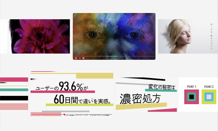 サイト内でのファーストビューはブランドムービーにより一気に世界に引き込む設計。商品単体を訴求するよりも“強い世界観”から「美しさは素まつげから。」をメッセージに感情を揺り動かしその後のサイト内循環のきっかけをつくる。