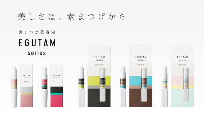 2024年8月に「EGUTAM」本体、マスカラ3種のパッケージがリニューアル。同時に高級ラインとして「EGUTAM PREMIUM」が新発売 。新たな商品ラインの差別化と商品バリエーションの明確化を図るためにリブランディングを行いました。