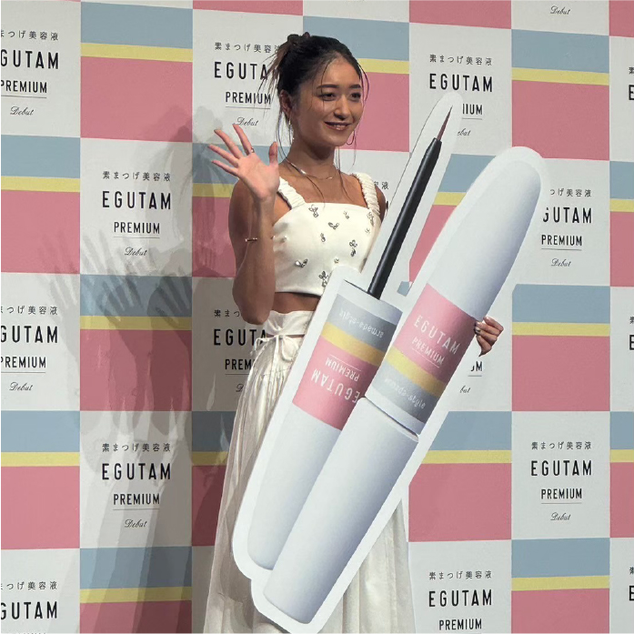 「EGUTAMプレミアム新発売」「EGUTAMシリーズ刷新」「パッケージ変更」を同時発表する形で実施された会見は、新製品発表だけでなくブランド全体の「アップデート宣言」と「素まつげ」という新しい価値観の定義づけを目的としました。美容家とみちょぱさんをアサインし発信。