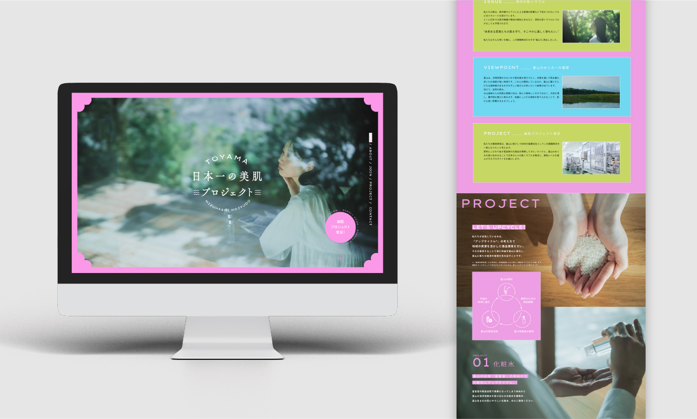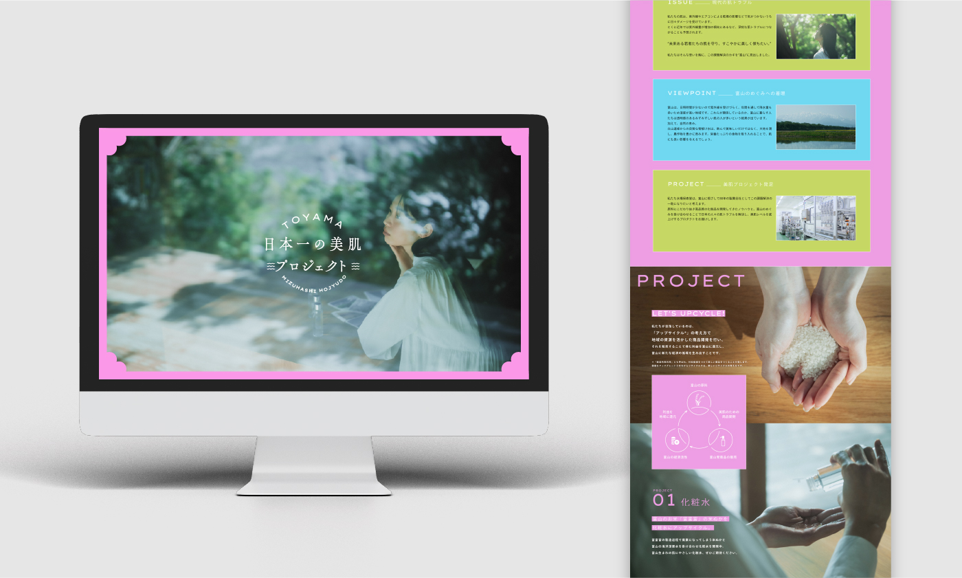 「富山から、日本の美肌レベルを上げる」という大義を言葉とビジュアルの両面で具現化しています。